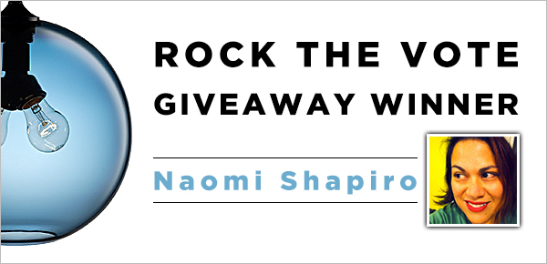 Congratulations to Naomi Shapiro of Wichita, Kansas on her success in winning a Sapphire Binary pendant in our 2012 Rock the Vote giveaway. We want to thank everyone who participated in our poll! Seems like most of you were on the same page as the actual results. What a race!
