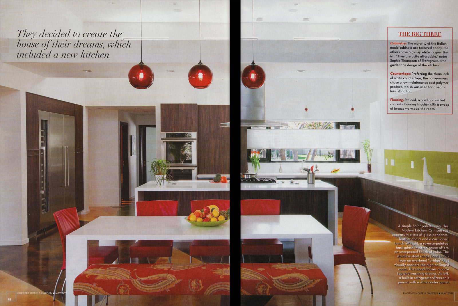 The kitchen in this 1957 Phoenix ranch underwent a big renovation and we love the way the warm spirit of the place was clearly left in tact while some very modern influences were seamlessly tied into the equation. Crimson is a real show stopper. Thanks to momma Charlotte for bringing to our attention back in New York!