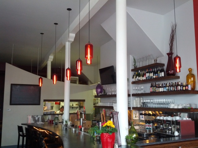 Radish, a hip, organic-focused restaurant located in San Francisco, chose Niche Modern's Pharos pendants to illuminate their bar area. The Pharos in Crimson ties together the dark hues of the eatery and the backsplash of red along the interior walls. The elongated silhouette of the Pharos adds depth and distinction to the white ceilings. The allure and vibrant hue of the pendant lights invites you to stay under their light all day, making the bar a more enjoyable experience while sipping a mimosa at brunch or relaxing in the bar after a long day in the office.
