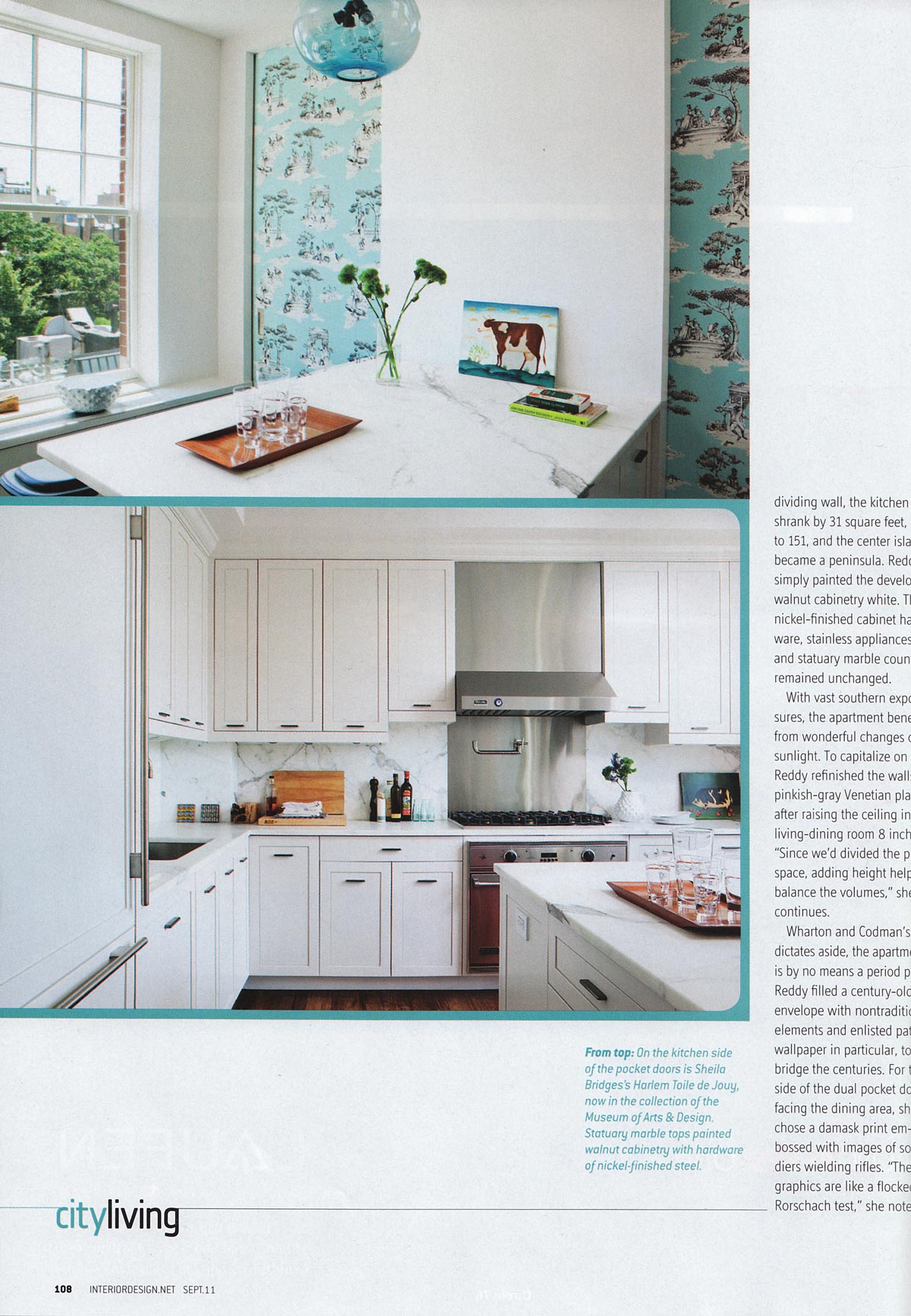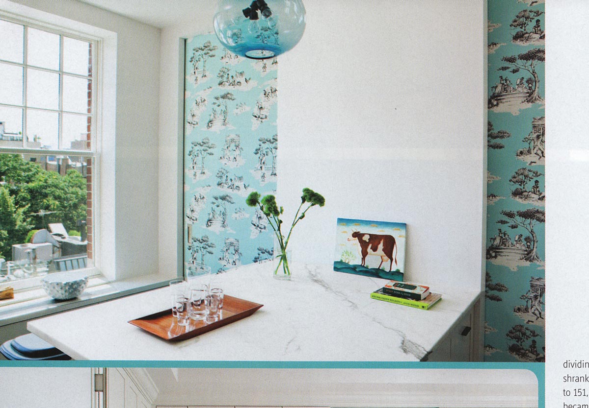 We've been working with Suchi Reddy of Reddymade Design on some really spectacular projects for a number of years now. This is a gorgeous example of their aesthetic from a feature in Interior Design. The gentle blues of the Niche Modern Terra in sapphire against the panels of wall paper in this Greenwich Village townhouse are beautifully wed. It must feel like Spring every day of the year in there!