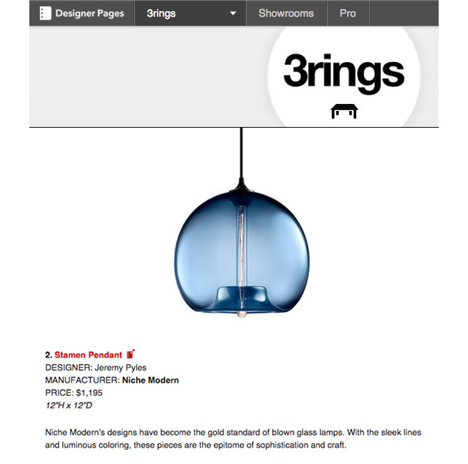 3rings, a weblog devoted to uncovering and sharing the latest and greatest products in architecture and design, featured Niche on a list of Top 10 Blown Glass Lighting!