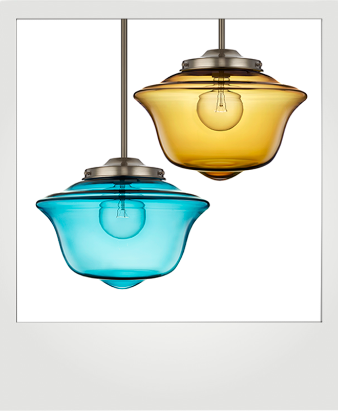 Why stop at one color? Pair your favorite Schoolhaus pendants! Our rich colored glass with new metal hardware will bring sophistication to any room.